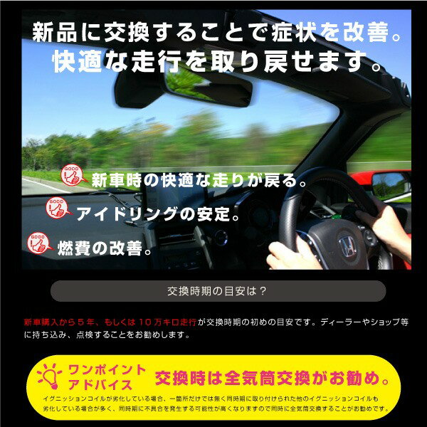 不具合症状が断続的に生じたり改善しない場合は、イグニッションコイルの交換をおすすめいたします。