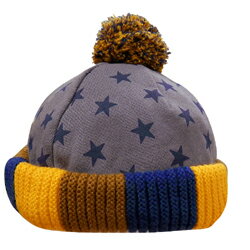 リブ部分の色使いがカラフルに切り替わっていてインパクトありますよ!! ボン天も色がミックスされていて愛らしく可愛さ満点◎ 帽体は通常トレーナーに使用される裏毛パイルで、総柄が可愛いですね♪